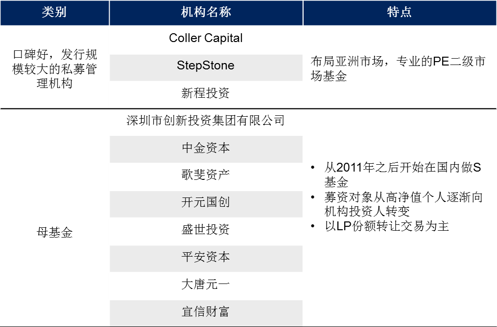 (3) 目前市场变现需求较为急迫的LP有3类: